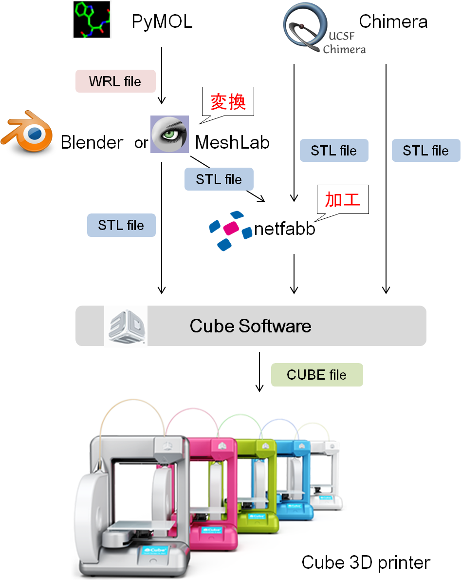 3Dプリンターとは関係ありませんが、PyMOLで作成した図をBlenderでレンダリングすることできれいな図が作れるようです。