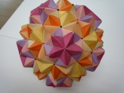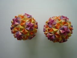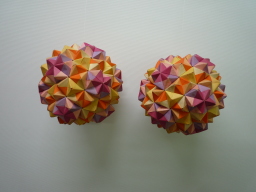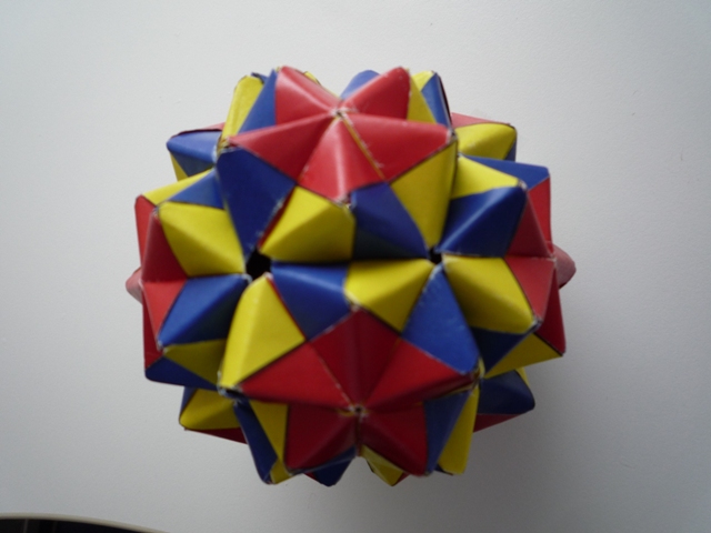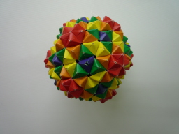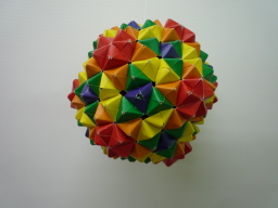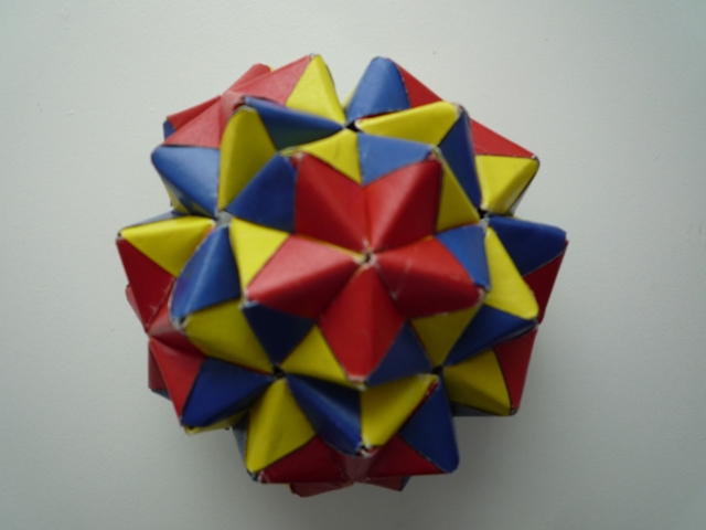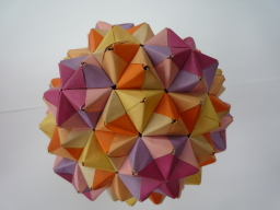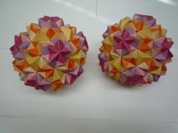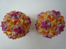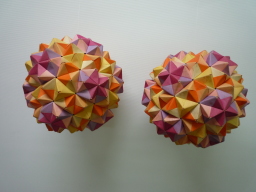 - T=1の意味 大きな折り紙を作えば、大きなウイルス構造をつくることができますが、そこは一工夫です。 前回購入した一辺7.5センチメートルの折り紙が大量に余っているので、これを使ってもう少し大きな構造を作る方法を考えましょう。 でもその前にどうすれば同じ大きさの紙で大きなウイルス構造をつくることが出来るか考えてみましょう。 それを理解するために、折り紙の代わりに正二十面体(T=1)の展開図
