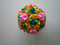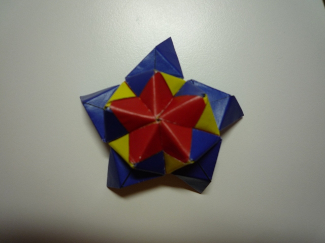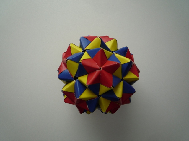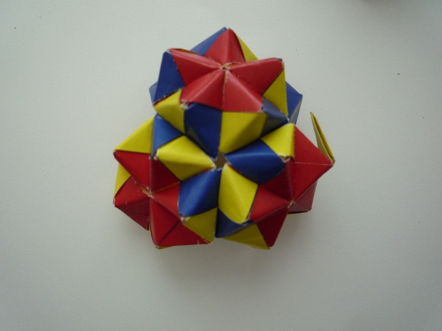 - 赤が中心に来るようにして5回回転軸のところを作ります。(パーツを5個使用)これを12セット作ります。