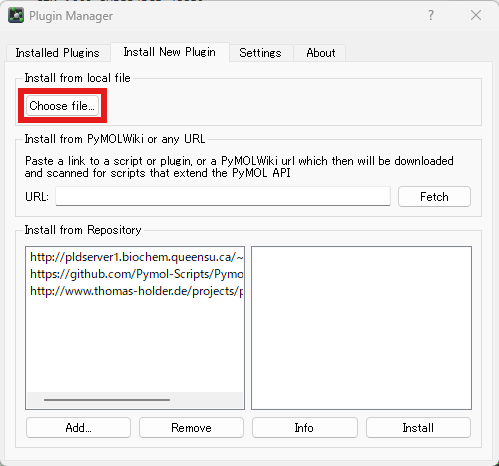 PyMOLを起動し、メニューバーの「Plugin」から「Plugin Manager」を選択します。