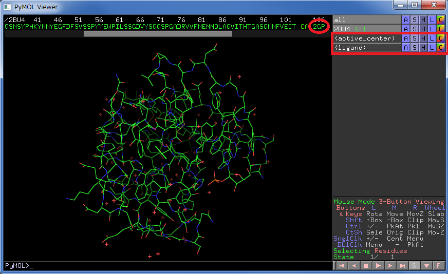 表示したいアミノ酸残基とリガンドをそれぞれ適当な名前で選択します。