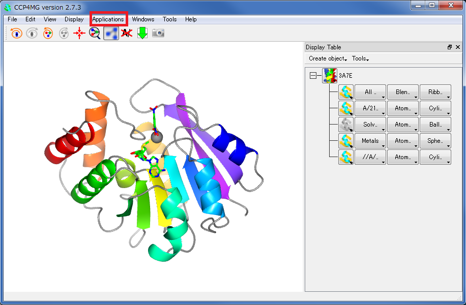 CCP4mgは非常に高機能でアニメーションの作成や電子密度の表示など手軽に利用することができます。