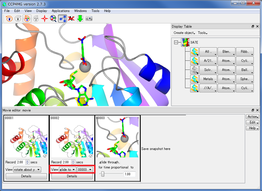 マウス操作(ホイール)でズームして、スナップショットを作成します。00002を "glide to 00003" に変更します。