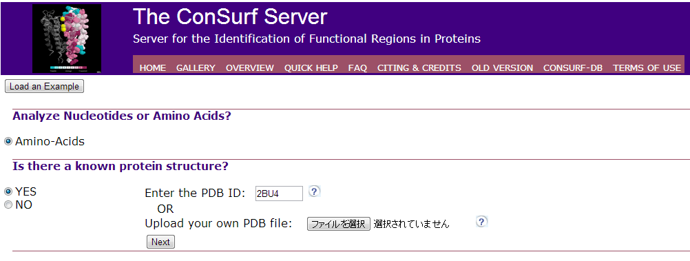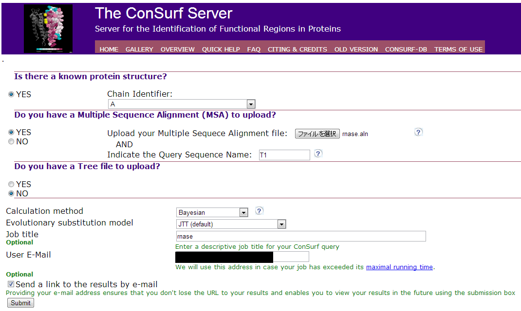 The Consurf Serverを使ったアミノ酸の保存度による色分けの方法です。ここでは5つ以上の配列を使います。 4つ以下だとThe Consurf Serverでは計算してもらえません。4つ以下の場合は