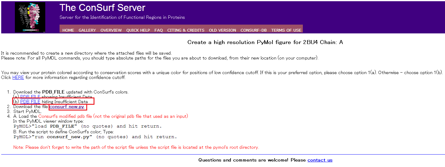 計算が終わったら、Follow the instructions to produce a PyMol figure (For users of PyMol)をクリック