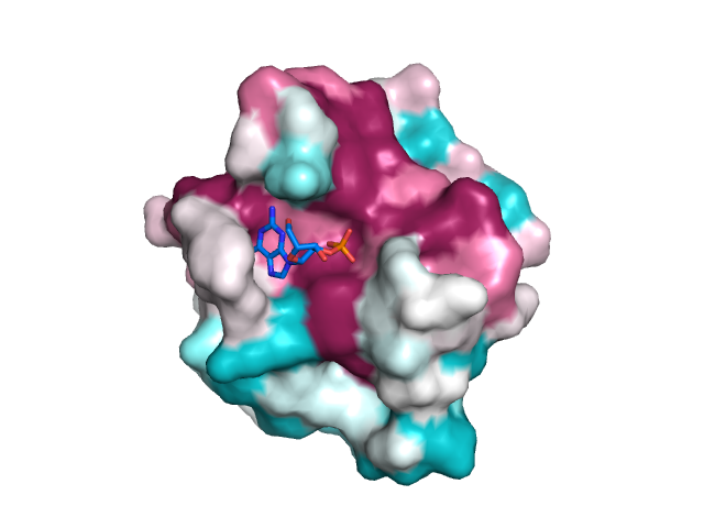 分子表面を表示して完成です。保存性の高い場所が紫、低いところが水色に色分けされます。
