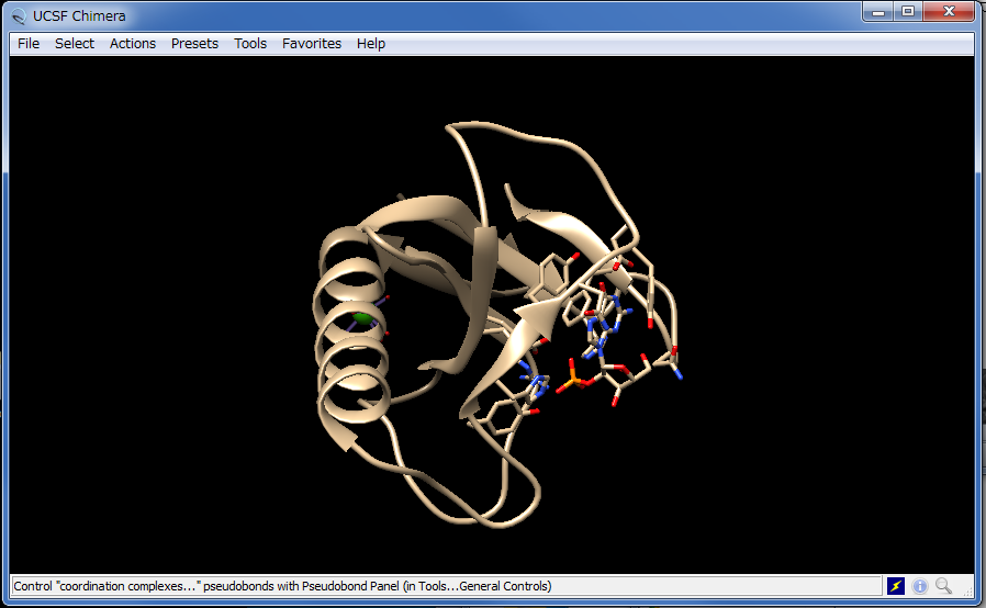CHIMERAを起動して、File → Openから色を付けるpdbファイルを開きます。