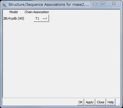 Structure → Associationsからpdbファイルに対応する配列を選択します。