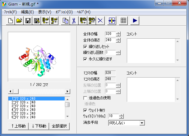 "ファイル → 名前を付けて保存" でGIFファイルを出力します。