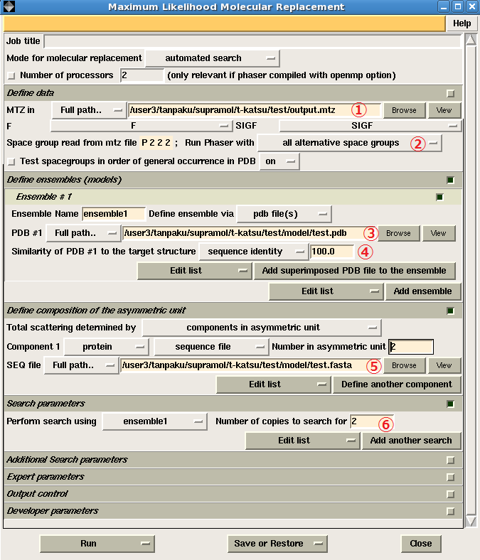2."Run Phaser with"のプルダウンから"all alternative space groups"を選択