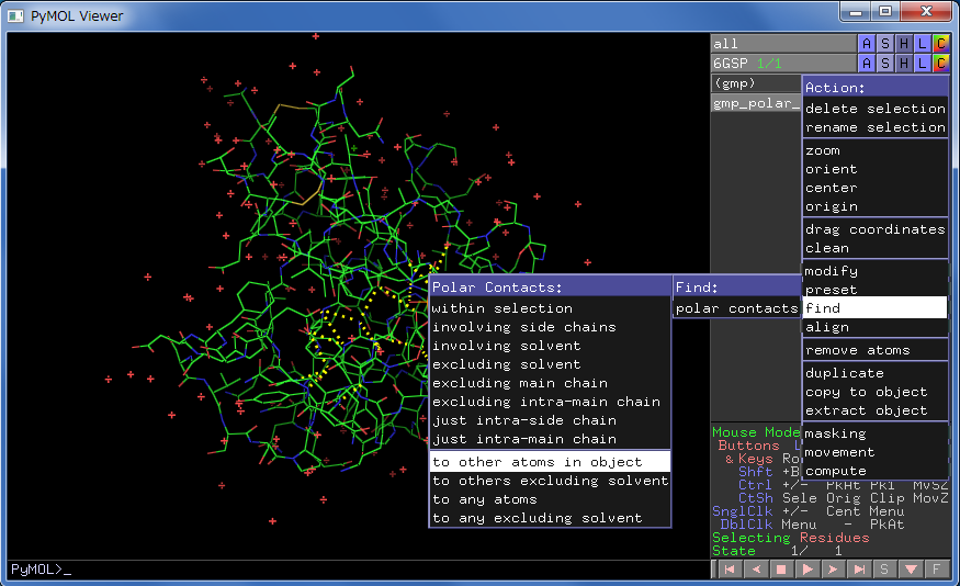 Action → find → polar contacts → to other atom in object