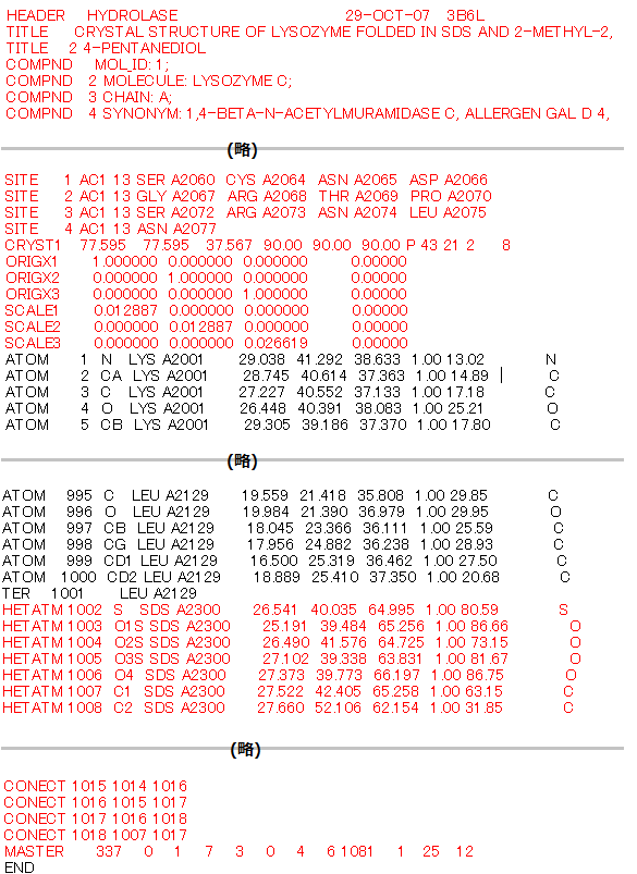 ダウンロードしたPDBファイルをテキストエディタで開いて、ヘッダや非タンパク質分子を削除します。 複数分子ある場合は一分子を残して削除します。