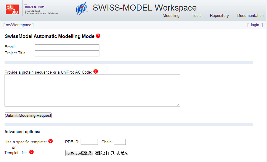 配列とE-mailアドレスを入力して "Submit Modeling Request" をクリック。
