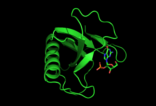 cartoon表示ではタンパク質分子しか表示されないので、非タンパク質分子を選択して別途表示します。
